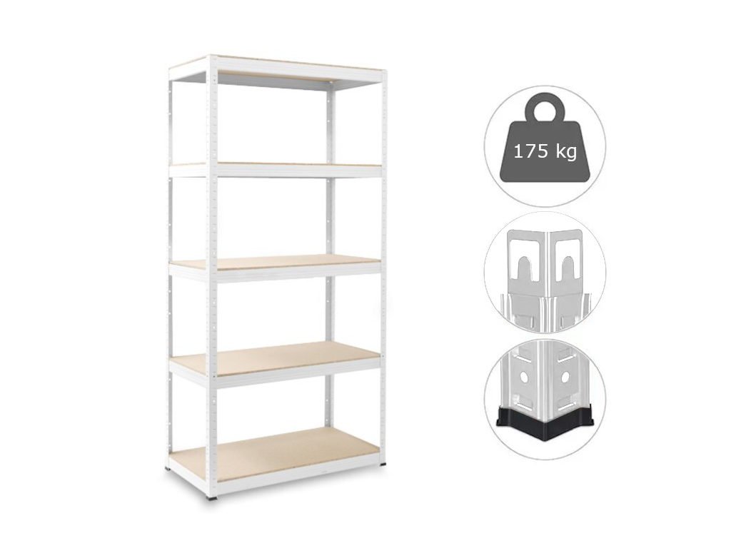 MEGA HIT: Raft 180x90x40 cm lăcuit cu 5 polite, portanta 875 kg - ALB