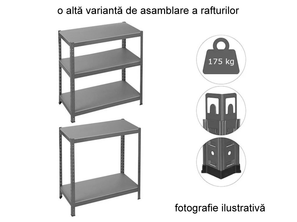 Atenție: Raftul poate fi combinat numai cu alte rafturi din gama MEGA HIT. Designul este ușor diferit față de celelalte rafturi.
