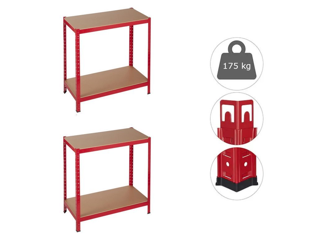 MEGA HIT: Raft lăcuit cu 4 polite, 150x70x30 cm, portanta 700 kg - ROSU (nuanță RAL 3020)
