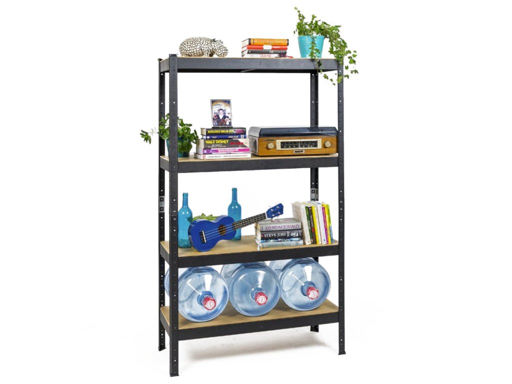 Raft 160x80x40 cm lăcuit cu 4 polite, portanta 700 kg - NEGRU